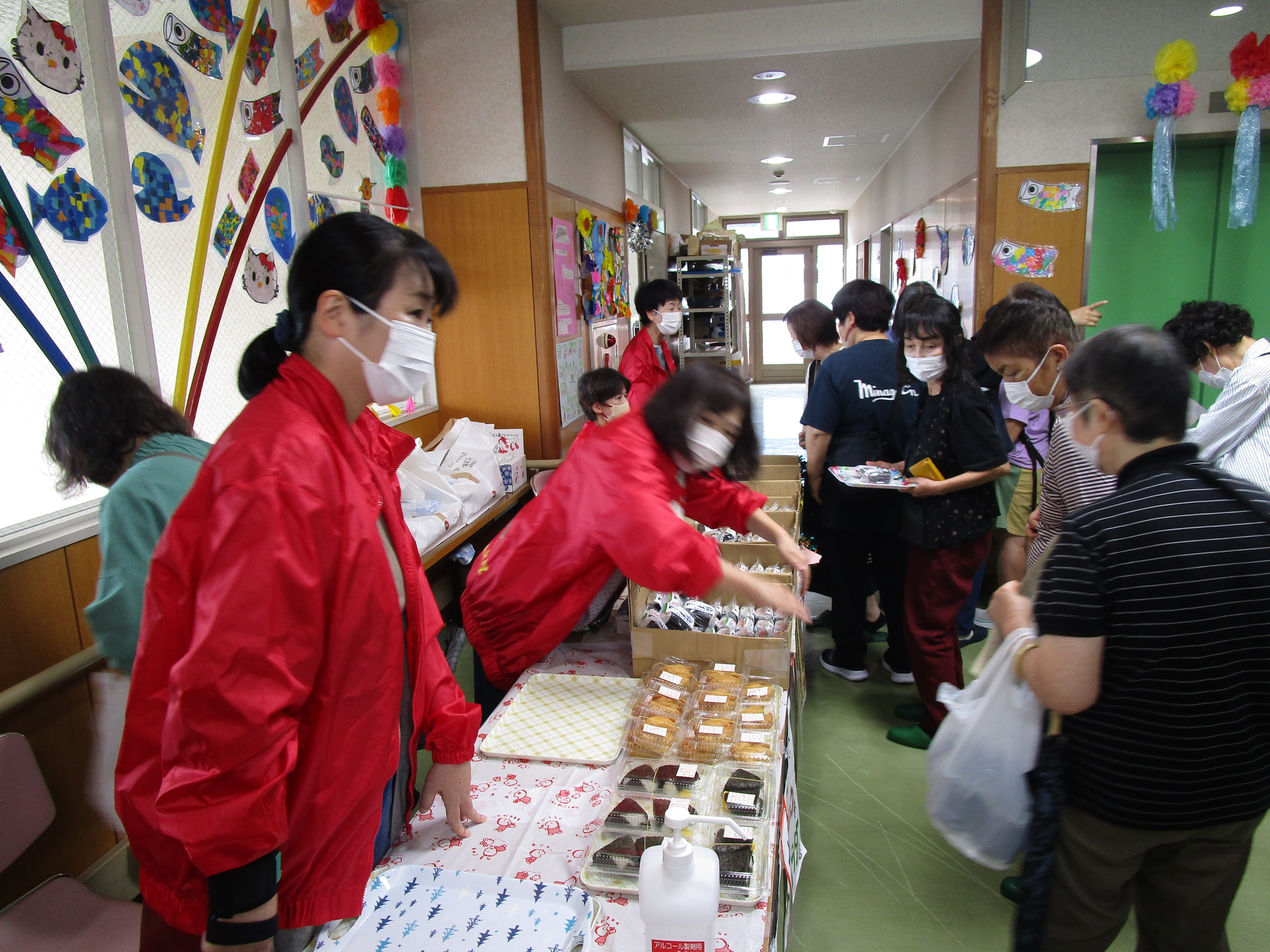保護者の方々が、がぶりん棒やおむすびを販売してくださっています。