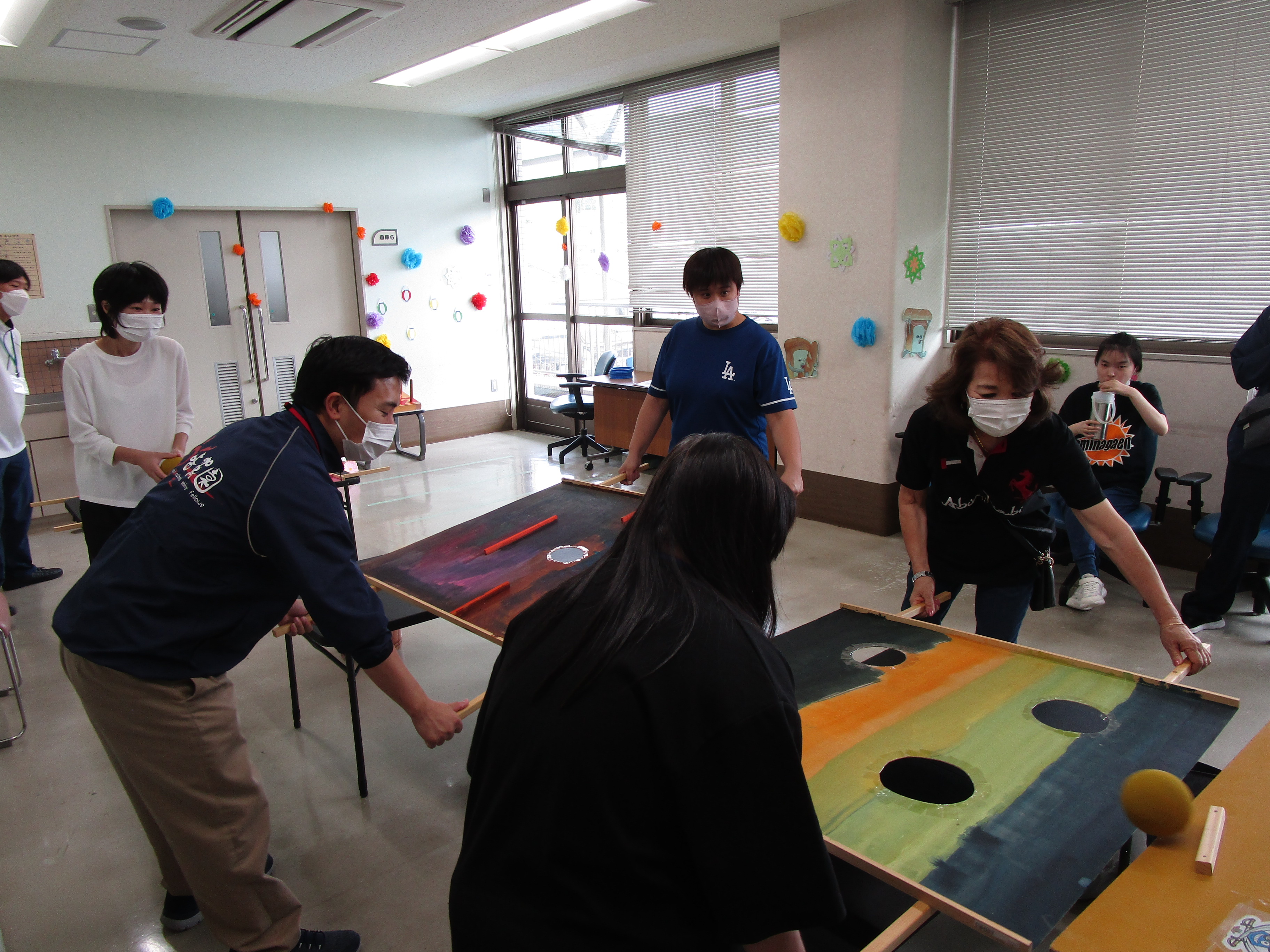 | スタンプラリーやコリントゲーム、射的など、いろんなゲームを楽しみました。 みなさん、大盛り上がりです。 |