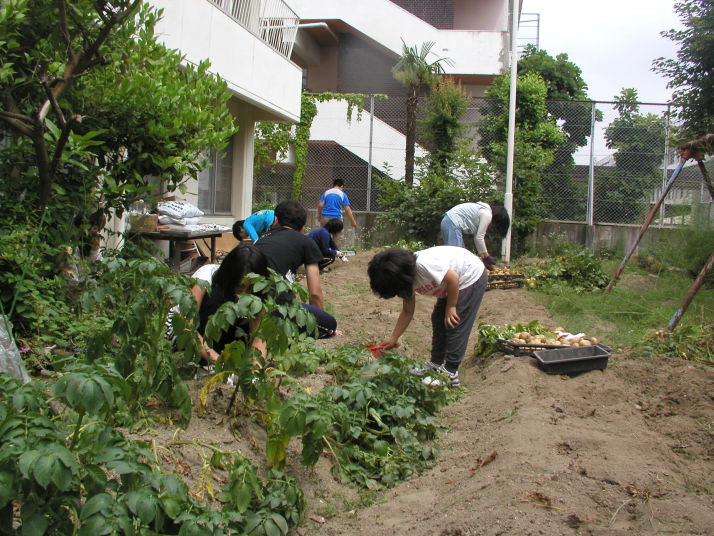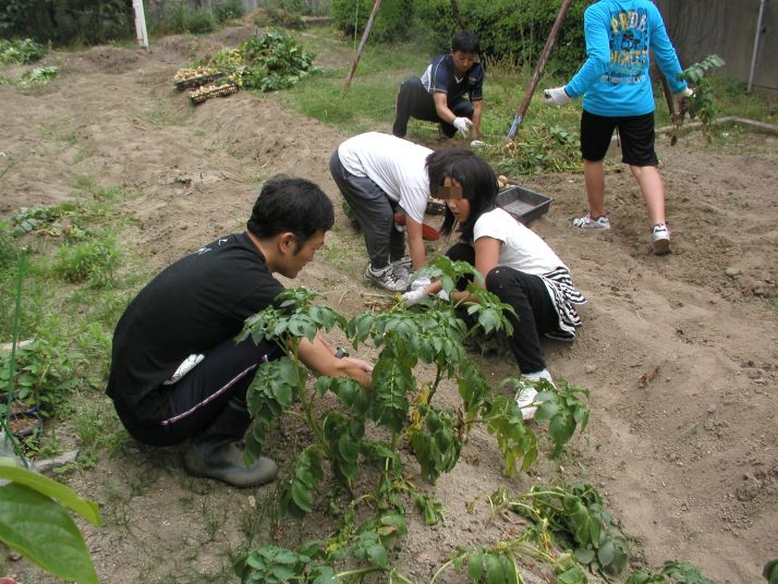 みんな黙々と作業。 ジャガイモが次々に収穫されていきます |